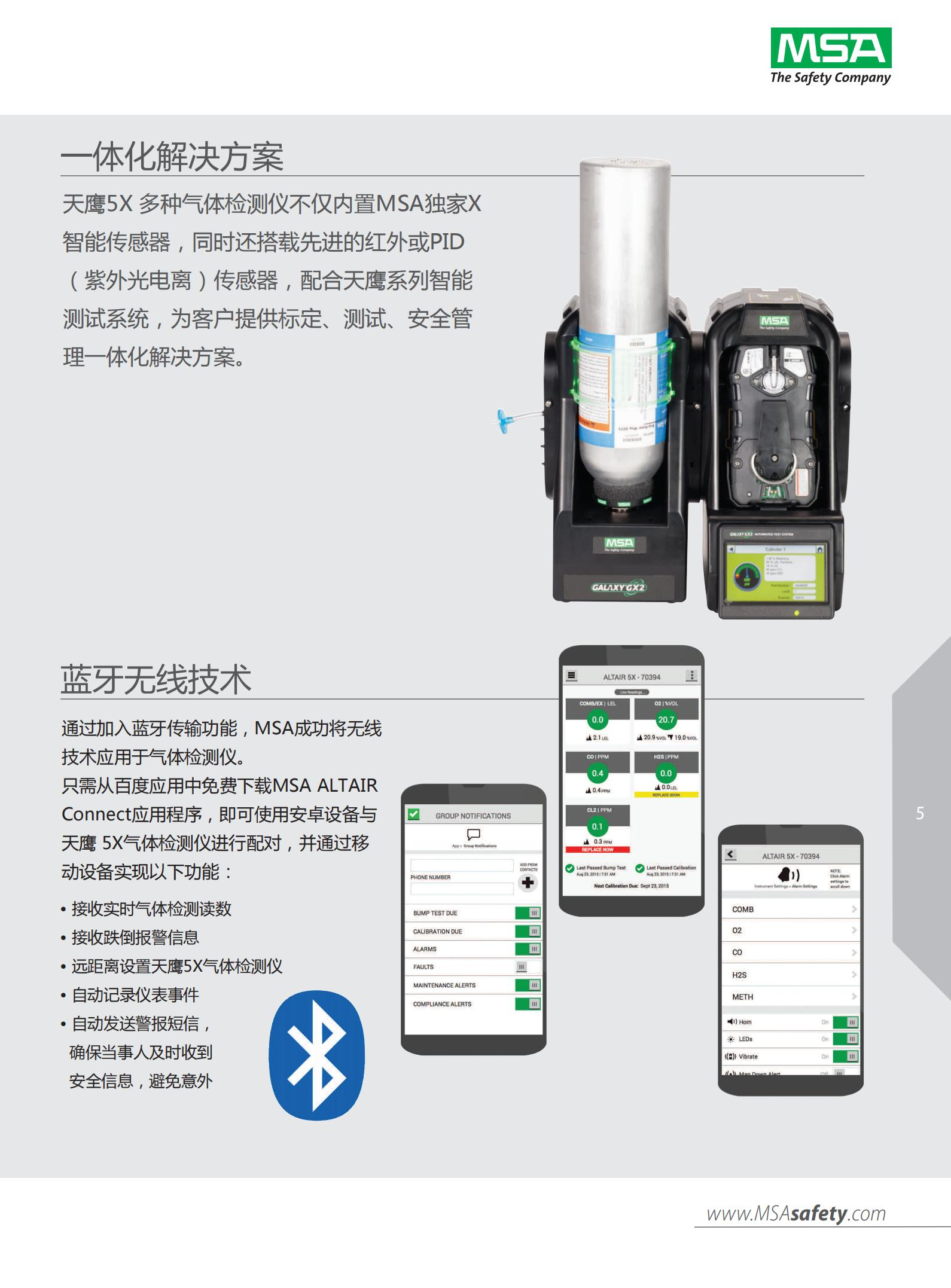 MSA在現(xiàn)有天鷹5X 的基礎(chǔ)上新增了藍牙無線功能,實現(xiàn)了氣體檢測儀和其他便攜式安卓智能設(shè)備(手機,平板電腦)的無線互聯(lián)。只需在安卓移動設(shè)備上通過百度助手免費下載MSA專屬無線平臺——ALTAIR Connect APP,即可實時接收氣體檢測讀數(shù)、更改氣體檢測儀設(shè)置、接收報警信息。